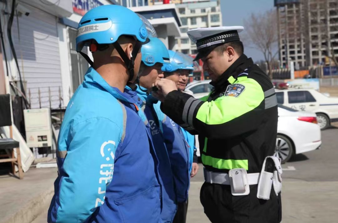 五大連池市公安局交巡警大隊“一盔一帶”主題宣傳活動走進外賣配送企業(yè)