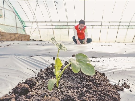 友誼農(nóng)場水稻大棚種起“百斤”瓜
