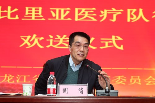 周簡(jiǎn)書(shū)記代表國(guó)家衛(wèi)生健康委,以“再武裝、再出發(fā)、再戰(zhàn)斗”為題,從思想準(zhǔn)備、組織準(zhǔn)備、技術(shù)準(zhǔn)備、物資準(zhǔn)備等四個(gè)方面向醫(yī)療隊(duì)寄語(yǔ)。他指出,中國(guó)對(duì)外衛(wèi)生援助淵遠(yuǎn)流長(zhǎng),在半個(gè)多世紀(jì)的時(shí)間里,黑龍江省共派出1030人次醫(yī)務(wù)工作者參與了援外醫(yī)療工作,積極踐行國(guó)際人道主義精神,勇于克服種種困難,砥礪前行,為受援國(guó)留下了“帶不走的醫(yī)療隊(duì)”。醫(yī)療隊(duì)促進(jìn)了當(dāng)?shù)蒯t(yī)療衛(wèi)生事業(yè)的發(fā)展,有力地支持了我國(guó)的外交工作,為推進(jìn)人類(lèi)和平與發(fā)展的崇高事業(yè)做出了貢獻(xiàn)。當(dāng)前,面對(duì)全球肆虐的新冠肺炎疫情,中非合作抗疫刻不容緩,醫(yī)療隊(duì)員面臨的任務(wù)更艱巨,但是使命光榮。