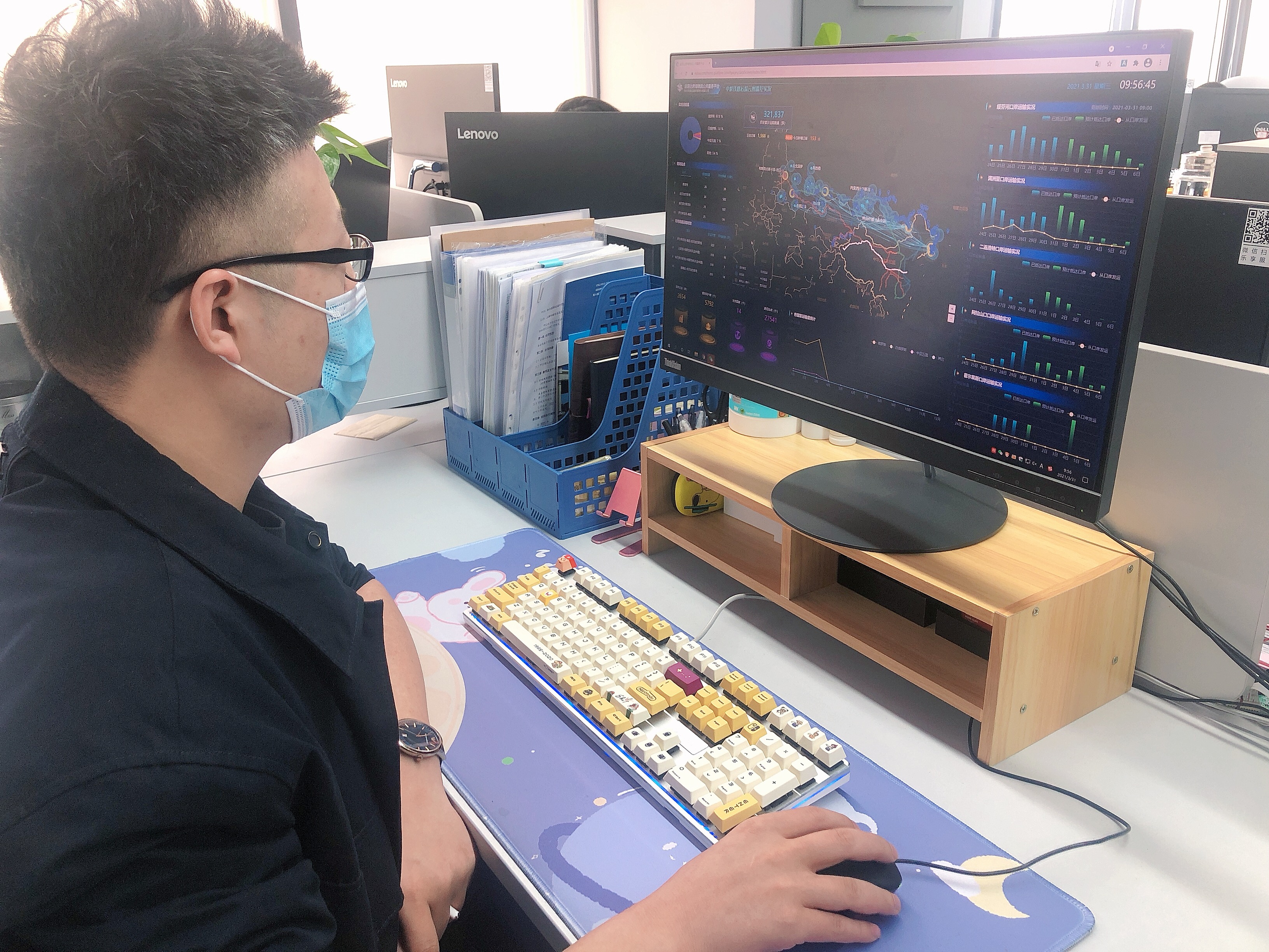 俄運(yùn)通大數(shù)據(jù)事業(yè)部工作人員線上實(shí)時(shí)監(jiān)控貨物位置和軌跡信息
