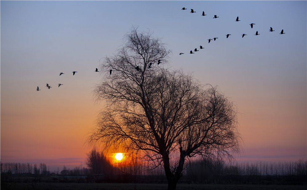 候鳥排開“人字陣”