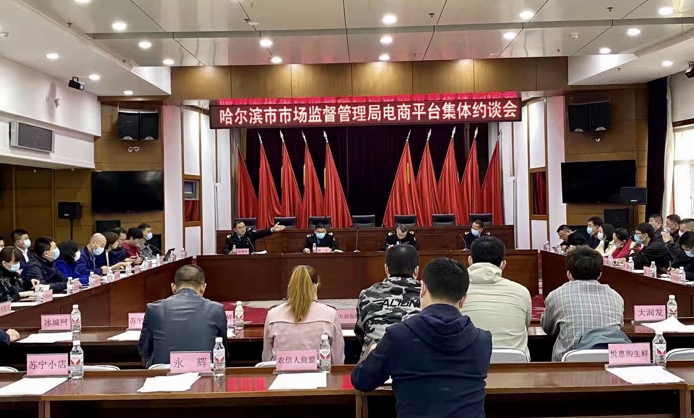 龍頭新聞?dòng)崳?span style="text-indent: 32px;">朱大治 記者 劉莉)近年來(lái),哈爾濱食品、食用農(nóng)產(chǎn)品電商迅猛發(fā)展,已成為市場(chǎng)銷(xiāo)售環(huán)節(jié)的“主力軍”。為確保銷(xiāo)售環(huán)節(jié)主要渠道食品和食用農(nóng)產(chǎn)品安全,督促經(jīng)營(yíng)者履行食品安全主體責(zé)任,針對(duì)電商平臺(tái)和經(jīng)營(yíng)者還存在備案登記、公開(kāi)公示、主體資格審查、進(jìn)貨查驗(yàn)等方面不符合要求的問(wèn)題,23日,哈爾濱市市場(chǎng)監(jiān)督管理局組織美團(tuán)、京東、拼多多、橙心優(yōu)選等33家電商平臺(tái)及22家大型連鎖食品經(jīng)營(yíng)企業(yè)進(jìn)行了集體約談。
