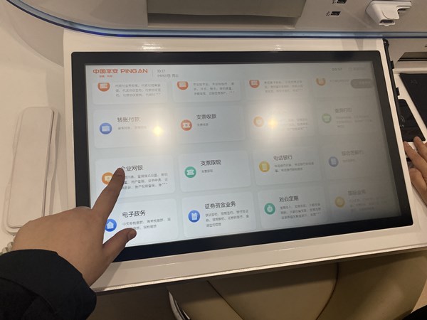 記者看到,智能網(wǎng)點(diǎn)既適老也適小。在互動(dòng)體驗(yàn)區(qū),由9塊顯示屏拼接而成的屏幕區(qū)格外引人注意。顯示屏分別顯示著網(wǎng)點(diǎn)的理財(cái)產(chǎn)品、營(yíng)銷數(shù)據(jù)等,每15分鐘就會(huì)進(jìn)行一次更新。不僅如此,客戶還可以在這里玩游戲、拍照片。李權(quán)介紹,很多時(shí)候,客戶的焦慮來(lái)自等待,一些帶著孩子來(lái)辦理業(yè)務(wù)的客戶,最怕小朋友無(wú)聊,通過(guò)互動(dòng)體驗(yàn)區(qū),小朋友可以在屏幕前玩游戲,這樣客戶辦理業(yè)務(wù)時(shí)也能更安心。“我們的服務(wù)區(qū)域用來(lái)滿足客戶日常業(yè)務(wù)辦理需求,而游戲、特色景點(diǎn)、交通、美食等混業(yè)信息的交互則能消除顧客的等候焦慮?!崩顧?quán)說(shuō)道。