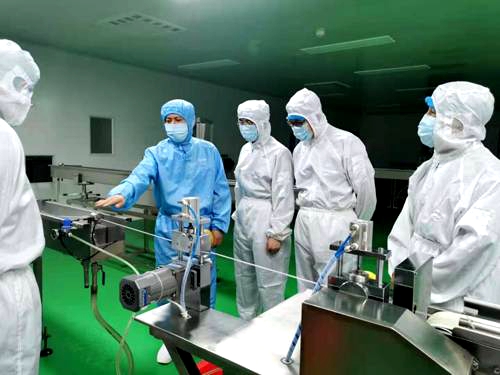 檢查組在黑龍江升華醫(yī)療器械有限公司潔凈車間進(jìn)行檢查