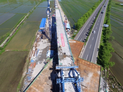 中鐵二十局佳鶴鐵路二分部經(jīng)理魏偉介紹,作為全線跨度最大的連續(xù)梁,該橋跨越鶴大高速公路,施工中需分節(jié)段澆筑混凝土,技術(shù)標(biāo)準(zhǔn)要求高、安全風(fēng)險(xiǎn)大。