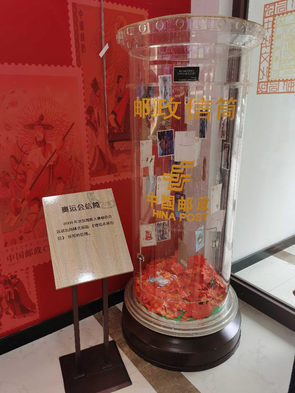 一進(jìn)門右手邊,是一個(gè)透明的郵政信筒,它來(lái)自2008年北京殘奧會(huì)閉幕式,現(xiàn)場(chǎng)有很多人通過(guò)它投遞出了《寄給未來(lái)的信》。左右兩側(cè)的墻上,懸掛著中華文化郵品,用郵票的形式展示傳統(tǒng)文化,重陽(yáng)節(jié)、梅蘭芳舞臺(tái)藝術(shù)、景德鎮(zhèn)瓷器等具有紀(jì)念意義的郵票都位列其中,這里是集郵愛(ài)好者的天堂。