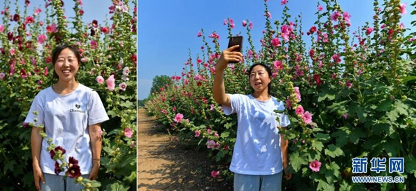 拼版照片:左圖為杜云芝在太原市小店區(qū)王吳村鮮花種植基地;右圖為杜云芝在鮮花種植基地進(jìn)行直播(7月7日攝)。今年30歲的杜云芝外出務(wù)工近10年,作為一名資深銷售人員,她有著豐富的直播經(jīng)驗(yàn)。近年來(lái),太原市小店區(qū)王吳村大力發(fā)展鄉(xiāng)村旅游,杜云芝回到家鄉(xiāng),用手機(jī)記錄鄉(xiāng)村變化,宣傳家鄉(xiāng)美景。