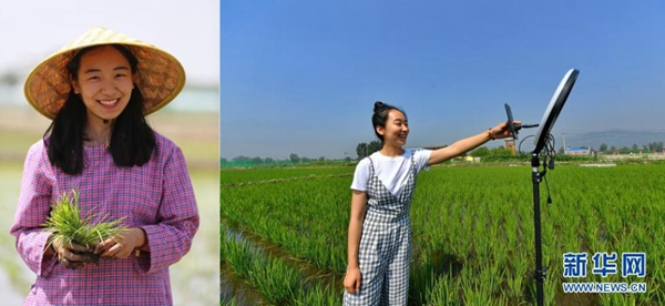 拼版照片:左圖為程玉嬌在太原市晉源區(qū)三家村水稻田里;右圖為程玉嬌在水稻田里進(jìn)行直播(7月9日攝)。今年24歲的程玉嬌2019年留學(xué)回國(guó)后,選擇了返鄉(xiāng)創(chuàng)業(yè)發(fā)展稻魚菜綜合種養(yǎng)農(nóng)業(yè)。晉源區(qū)三家村出產(chǎn)的大米遠(yuǎn)近聞名,程玉嬌在社交平臺(tái)上開(kāi)通了雙語(yǔ)直播,在科普水稻知識(shí)的同時(shí)拓展銷售渠道,不僅生意做得風(fēng)風(fēng)火火,自己也變成了小有名氣的“網(wǎng)紅”。