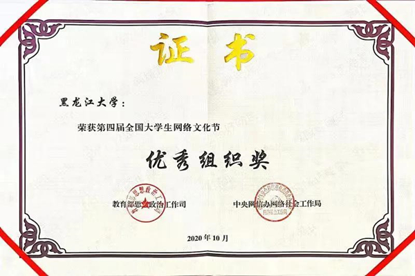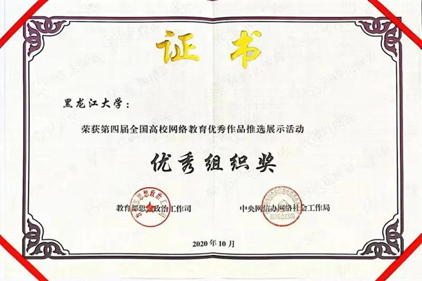 黑龍江大學(xué)一直高度重視網(wǎng)絡(luò)思政教育,曾獲全國大學(xué)生網(wǎng)絡(luò)文化節(jié)優(yōu)秀組織獎、全國大學(xué)生網(wǎng)絡(luò)文化節(jié)和全國高校網(wǎng)絡(luò)教育優(yōu)秀作品推選活動一等獎、二等獎等多項榮譽。作為黑龍江省高校網(wǎng)絡(luò)思政中心的依托建設(shè)高校,黑龍江大學(xué)承辦了3屆黑龍江省大學(xué)生網(wǎng)絡(luò)文化節(jié)和黑龍江省高校網(wǎng)絡(luò)教育優(yōu)秀作品推選展示活動,累計評選5000余件黑龍江省高校優(yōu)秀師生網(wǎng)絡(luò)文化作品,并推選出1882件黑龍江省優(yōu)秀高校師生作品參加全國評選。今后,黑龍江大學(xué)將繼續(xù)強化思想引領(lǐng),聚焦立德樹人,依托黑龍江省高校網(wǎng)絡(luò)思政中心,引領(lǐng)全省高校構(gòu)建新時代高等教育網(wǎng)絡(luò)思想政治工作體系。
