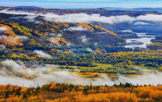 黑龍江經(jīng)濟(jì)網(wǎng)訊(記者魏?。┖邶埥那锾?,是大自然饋贈(zèng)的最華麗的狂歡,那濃得化不開的五花山色,明艷動(dòng)人,一望無(wú)際,似列維坦筆下寫實(shí)的秋彩:各類喬木正由綠向金黃漸變,當(dāng)中夾雜著火紅的楓葉、蒼翠的松枝、銀白的瀑布……比起夏日滿眼的綠色,更多了一份五彩繽紛的浪漫,一條條通向天際線的公路,仿佛可以直達(dá)天界。