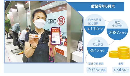 數(shù)據(jù)顯示,截至9月10日,工行北京分行試點(diǎn)的數(shù)字人民幣應(yīng)用場景達(dá)8萬多個(gè),集中在與社會民生緊密相關(guān)的交通出行、餐飲住宿、購物消費(fèi)、旅游觀光、醫(yī)療衛(wèi)生、通信服務(wù)、票務(wù)娛樂7大類場景。中國人民銀行近期發(fā)布的《中國數(shù)字人民幣的研發(fā)進(jìn)展》白皮書顯示,截至今年6月末,數(shù)字人民幣試點(diǎn)場景已超132萬個(gè),開立個(gè)人錢包2087萬余個(gè)、對公錢包351萬余個(gè),累計(jì)交易筆數(shù)7075萬余筆、金額約345億元。