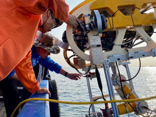 據(jù)介紹,我國水產(chǎn)養(yǎng)殖業(yè)規(guī)模不斷擴(kuò)大,潛水員捕撈人力成本高,每次只能作業(yè)20至30分鐘,加上冬季天氣寒冷、海況惡劣,水下工作環(huán)境相對危險(xiǎn)。近年來,黃海教授團(tuán)隊(duì)一直致力于研發(fā)海底生物捕撈水下機(jī)器人,不僅可以降低捕撈成本、提高捕撈效率及安全性,還能減少對海底生態(tài)環(huán)境的破壞,有利于海洋生物養(yǎng)殖業(yè)可持續(xù)發(fā)展。