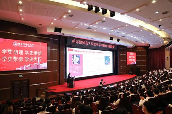 領(lǐng)導帶頭做表率,推動黨史學習教育往“深”里學。通過專題讀書班、集體參觀中共黑龍江歷史紀念館、中心組學習會等形式,學校領(lǐng)導班子帶頭學思悟踐、做示范表率。師生聆聽中央宣講團宣講報告會、省委黨校黨史學習教育專題講座。學校深入挖掘校史中的紅色基因,建設(shè)開放校史館,引導廣大師生從黨史視角了解學校歷史,在校史中學習黨史知識。