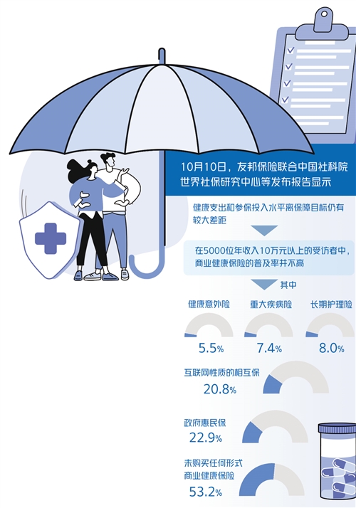 中國社會科學(xué)院保險與經(jīng)濟(jì)發(fā)展研究中心副主任王向楠在接受經(jīng)濟(jì)日報記者采訪時表示,全面建成小康社會后,居民對身體健康和醫(yī)療服務(wù)的需求進(jìn)一步增強(qiáng),而在我國醫(yī)療衛(wèi)生總費用中,居民自付部分保持在高位,所以居民對提升醫(yī)保水平的需求更迫切,商業(yè)保險可基于醫(yī)保推出更高水平的保障。與此同時,隨著人口老齡化深入,各類帶病人群增多,他們對養(yǎng)老和醫(yī)療在保障資金、物品和服務(wù)上均有需求,這為保險業(yè)發(fā)展綜合性健康險產(chǎn)品創(chuàng)造了空間。