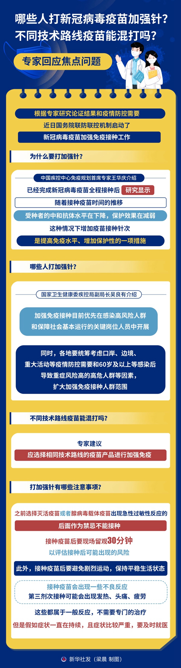 關(guān)于去哪里打加強(qiáng)針,問答指出,原則上感染高風(fēng)險人群和保障社會基本運(yùn)行的關(guān)鍵崗位人員加強(qiáng)免疫接種由各相關(guān)單位統(tǒng)一組織實施;其他人群可到轄區(qū)指定的接種單位進(jìn)行預(yù)約接種。各地具體接種信息見當(dāng)?shù)匦l(wèi)生健康部門或疾控中心發(fā)布的官方信息。