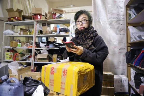 阿木爾林業(yè)局網(wǎng)商孫秀麗在快遞點(diǎn)為客戶(hù)準(zhǔn)備發(fā)貨(王力 攝)