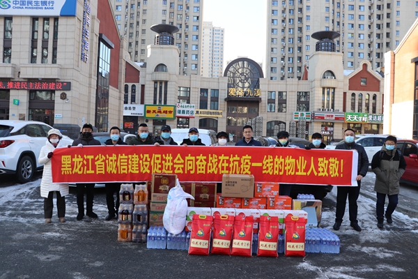 12月13日上午,黑龍江省誠信建設(shè)促進(jìn)會(huì)會(huì)長張波、黨支部書記張弘、省誠促會(huì)副會(huì)長孫瑞霞、認(rèn)證服務(wù)專委會(huì)主任于海波、物業(yè)誠信專委會(huì)副主任陳巍、哈爾濱南十八食品有限公司總經(jīng)理胡秋荔、齊齊哈爾市鶴潤食品原料有限公司總經(jīng)理王影、“誠信龍江”運(yùn)營中心副主任宋巍、秘書處工作人員、黨員及入黨積極分子一行10余人,深入疫情防控一線,看望慰問堅(jiān)守在疫情防控一線的疫情防控人員,為他們送上慰問品及必要的防疫物資。