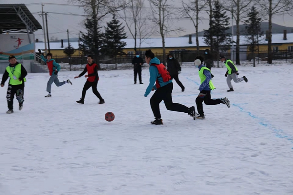 組織開展雪地足球比賽。作為學(xué)校的傳統(tǒng)特色項目,雪地足球的比賽成為全校的焦點(diǎn)。精心繪制的雪地足球場,為同學(xué)們提供了獨(dú)具興安特色的足球樂園。