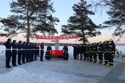 呼瑪縣素有紅色邊疆的美譽(yù),共建聯(lián)盟前往呼瑪縣江邊第173號(hào)界碑,在莊嚴(yán)的黨旗和界碑下,呼瑪縣森林消防大隊(duì)黨委書記苗亮亮帶領(lǐng)全體黨員同志重溫了入黨誓詞,舉行集體宣誓儀式,旨在進(jìn)一步強(qiáng)化廣大應(yīng)急人的政治意識(shí),增強(qiáng)黨性觀念,筑牢政治忠誠(chéng),永葆紅色氣質(zhì)。