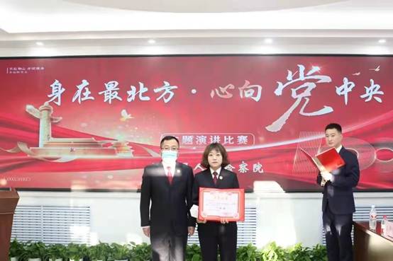 各位評委綜合考量場上選手語言表達(dá)、演講技巧、演講效果、儀表形象及稿件質(zhì)量,現(xiàn)場打分并即時公布,氣氛緊張激烈。評委老師王曉慧在點評環(huán)節(jié)用“熱情”“激昂”“振奮”三個詞對各位參賽選手給予充分肯定,她指出,通過各位參賽選手的現(xiàn)場表現(xiàn)和稿件質(zhì)量,可以感受到大家準(zhǔn)備得都很充分,感悟也很深刻,也從側(cè)面展現(xiàn)了檢察干警對黨的熱愛和良好風(fēng)貌。評委老師李光生表示,今天這場比賽,展示了塔河檢察人的精神風(fēng)貌。以演講比賽的形式豐富黨建工作,讓廣大干警更加樂于參與,這種方法值得推廣,也期待檢察機關(guān)在今后的工作中進(jìn)一步發(fā)揮黨建引領(lǐng)作用,加強組織、思想、隊伍、紀(jì)律方面的建設(shè),以高質(zhì)量的黨建引領(lǐng)推動塔河檢察工作高質(zhì)量發(fā)展。