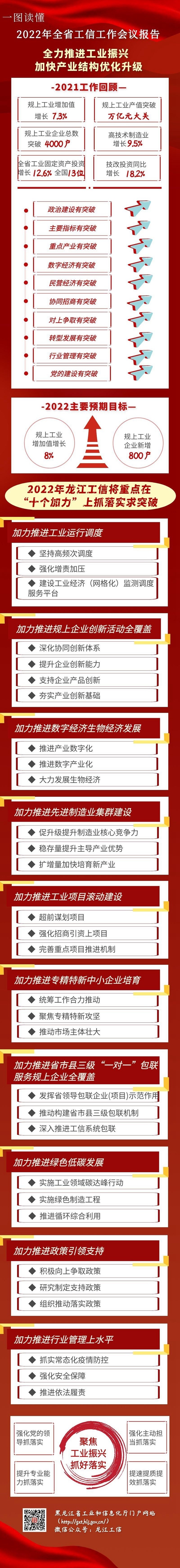 會(huì)議強(qiáng)調(diào),新的一年,要堅(jiān)持以習(xí)近平新時(shí)代中國(guó)特色社會(huì)主義思想為指導(dǎo),全面貫徹落實(shí)黨的十九大和十九屆歷次全會(huì)精神,深入貫徹落實(shí)習(xí)近平總書(shū)記重要講話重要指示批示精神,按照黨中央“提升制造業(yè)核心競(jìng)爭(zhēng)力”和省委“要把振興工業(yè)擺上突出位置”的部署要求,完整、準(zhǔn)確、全面貫徹新發(fā)展理念,服務(wù)和融入構(gòu)建新發(fā)展格局,推動(dòng)高質(zhì)量發(fā)展,堅(jiān)持思想思路破題、科學(xué)規(guī)劃引領(lǐng)、配套政策跟進(jìn)、聚焦優(yōu)勢(shì)揚(yáng)長(zhǎng)、激發(fā)活力補(bǔ)短,“穩(wěn)”字當(dāng)頭、“進(jìn)”字發(fā)力,全力實(shí)施工業(yè)振興計(jì)劃,以發(fā)展壯大數(shù)字經(jīng)濟(jì)、生物經(jīng)濟(jì)等戰(zhàn)略性新興產(chǎn)業(yè)為引領(lǐng),“十個(gè)加力”穩(wěn)存量擴(kuò)增量,鞏固實(shí)體經(jīng)濟(jì)根基,做強(qiáng)先進(jìn)制造業(yè),做優(yōu)現(xiàn)代產(chǎn)業(yè)體系,推動(dòng)工業(yè)經(jīng)濟(jì)實(shí)現(xiàn)質(zhì)的穩(wěn)步提升和量的合理增長(zhǎng),加快龍江工業(yè)再創(chuàng)新輝煌,以優(yōu)異成績(jī)迎接黨的二十大勝利召開(kāi)。