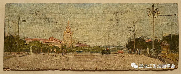 《有教堂的風(fēng)景》 14.5×17.2cm 紙本油彩 1985年