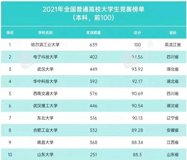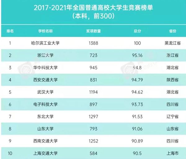 黑龍江經(jīng)濟(jì)網(wǎng)訊(黑龍江日?qǐng)?bào)全媒體見習(xí)記者董廣碩 商祺)近日,中國高等教育學(xué)會(huì)高校競(jìng)賽評(píng)估與管理體系研究工作組發(fā)布2021全國普通高校大學(xué)生競(jìng)賽分析報(bào)告,全國共有1197所本科院校進(jìn)入2017—2021年本科榜單。哈爾濱工業(yè)大學(xué)以獲獎(jiǎng)數(shù)量1388項(xiàng)、總分100分獲得2017—2021年全國普通高校大學(xué)生競(jìng)賽榜單榜首,以獲獎(jiǎng)數(shù)量639項(xiàng)、總分100分獲得2021年全國普通高校大學(xué)生競(jìng)賽榜單榜首。這是哈爾濱工業(yè)大學(xué)連續(xù)3次獲得上述榜單冠軍。