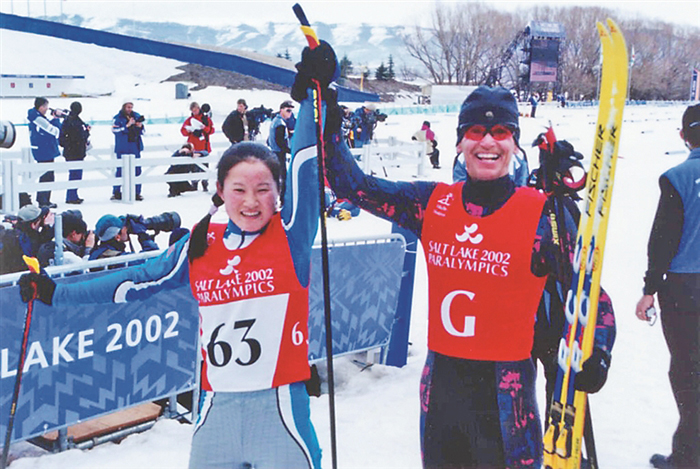 韓麗霞作為我國第一代盲人滑雪運動員參加2002年冬殘奧會,取得盲人B3級10公里傳統(tǒng)滑雪第6名。