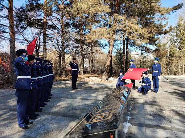 在革命烈士紀念碑前,全體指戰(zhàn)員整齊列隊,莊嚴肅穆,向長眠在這里的革命烈士致以崇高的敬意,深切緬懷那些為了新中國拋頭顱、灑熱血的先烈們。緊接著,指戰(zhàn)員面向紀念碑,高舉右手,重溫入黨誓詞。