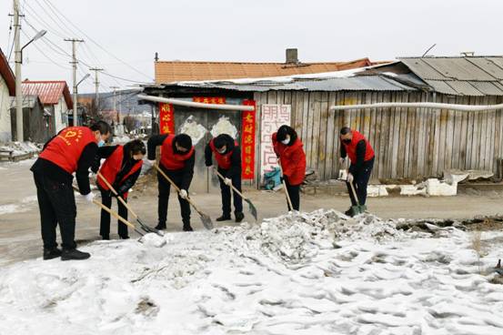 新林林業(yè)局機關(guān)科室“林海流星雨”志愿服務(wù)隊在居民區(qū)清掃積雪(崔紅霞 攝)