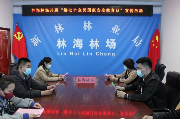 黑龍江經(jīng)濟(jì)網(wǎng)訊(王芬 崔紅霞 記者馬朝林)為提高干部職工對(duì)國家安全法治意識(shí),增強(qiáng)防范和抵御安全風(fēng)險(xiǎn)的能力,近日,新林林業(yè)局林海林場(chǎng)以“樹牢總體國家安全觀,感悟新時(shí)代國家安全成就,為迎接黨的二十大勝利召開營造良好氛圍”為主題,開展“第七個(gè)全民國家安全教育日”普法宣傳活動(dòng),教育引導(dǎo)職工群眾樹牢總體國家安全觀,共同維護(hù)國家安全。