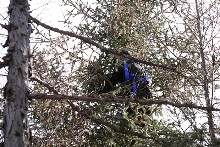 在收集區(qū)內,工作人員按照對比樹法,進行優(yōu)樹選擇,并為每棵優(yōu)樹進行了“戶口”登記,掛牌、GPS定位、拍照、生境及生長量記載。同時,他們還在選取的每棵優(yōu)樹中上部位置采集優(yōu)質穗條30條,用于嫁接來完成林木種質資源異地無性系收集。