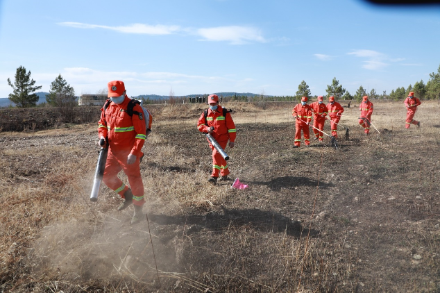 阿木爾林業(yè)局紅旗林場舉辦撲火技能競賽活動,防火專業(yè)隊隊員模擬實戰(zhàn)演練“一點兩面、分兵合圍”戰(zhàn)術(shù)(王力 攝)