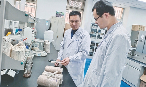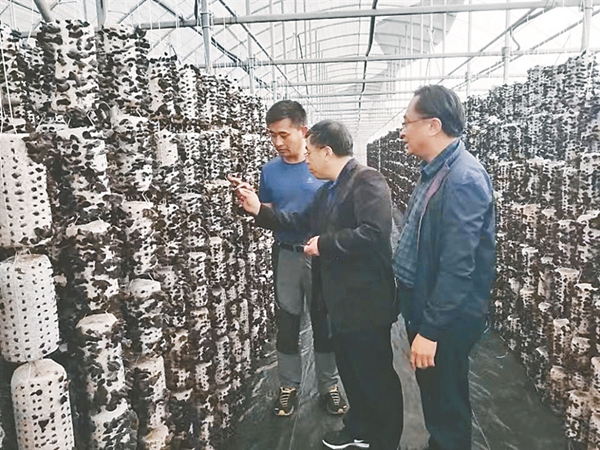 科研人員對黑木耳規(guī)?;a(chǎn)進行技術指導。