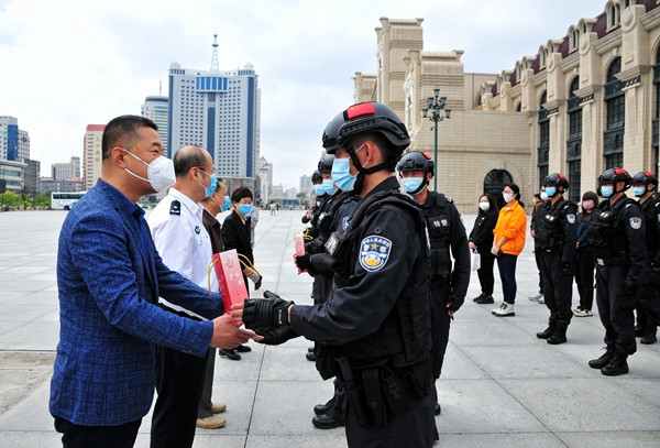 公益活動首批慰問對象是剛從抗疫一線歸來的哈爾濱市公安局巡特警支隊隊員。本次疫情期間,他們馳援五常市拉林鎮(zhèn)、哈爾濱市平房區(qū)和賓縣,先后核查車輛3700余臺,幫助群眾1100多人,為群眾配送餐食10萬余份、飲用水20余萬瓶、防疫物資9000余件,用血肉身軀筑起了抗擊疫情的鋼鐵長城,詮釋了“疫情當(dāng)前,特警在先”的使命擔(dān)當(dāng)。“感謝黑龍江日報報業(yè)集團(tuán)和愛心企業(yè)送來健康產(chǎn)品。今后我們會一如繼往做好本職工作,哪里需要哪里上,當(dāng)好人民的忠誠衛(wèi)士?!苯舆^“小綠君”,哈爾濱市公安局巡特警支隊特警一大隊二中隊教導(dǎo)員劉甲洲一臉幸福。