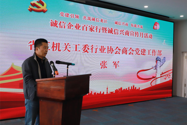 活動現(xiàn)場,省直機關(guān)工委行業(yè)協(xié)會商會黨建工作部張軍為本次活動致辭。他表示,此次活動以“黨建引領(lǐng)、共筑誠信龍江”為主題,是推動黨建工作與行業(yè)協(xié)會商會業(yè)務(wù)工作融合發(fā)展的具體舉措,希望省誠促會始終高舉黨的旗幟,堅定正確的政治方向,發(fā)揮誠信興商聯(lián)盟平臺作用,廣泛聯(lián)合龍江誠信社會組織,建設(shè)龍江誠信高地,打造誠信示范群體,形成誠信集聚效應(yīng),共興誠信之風(fēng)、樹立誠信典范、弘揚誠信力量,樹立龍江社會、龍江企業(yè)誠信文化典型,打造我省“誠信龍江”閃亮名片。