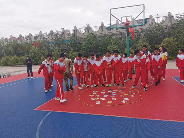 5月30日早8:00,初一學(xué)年100名學(xué)生分成四組開始了為期一天的拓展訓(xùn)練。拓展訓(xùn)練前,教練首先告訴同學(xué)們:軍人以服從紀(jì)律為天職,作為中國人應(yīng)懷著一顆感恩之心回報社會、建設(shè)祖國。
