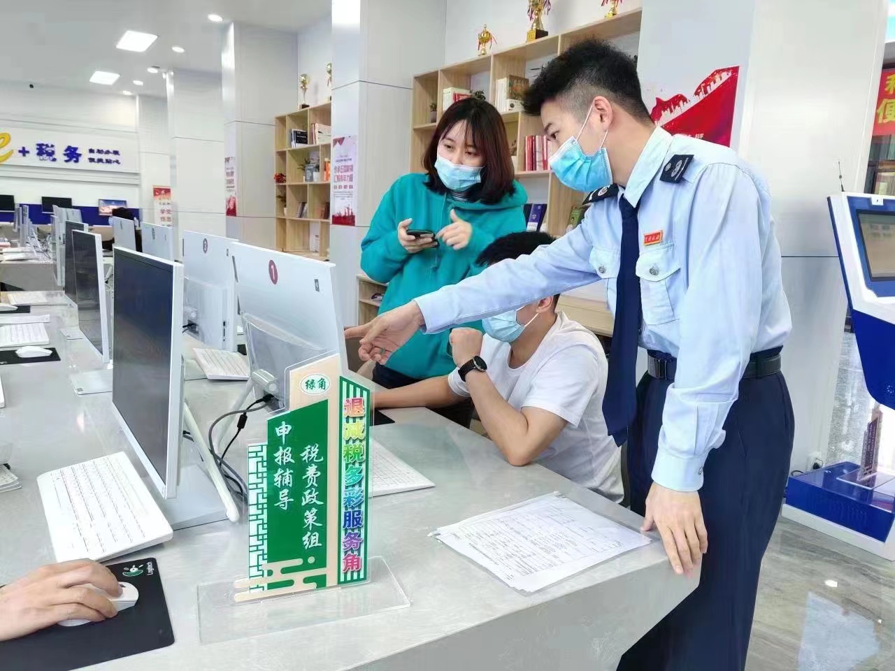 服務(wù)角暖人心,“政策直達(dá)”快起來。為實(shí)現(xiàn)新的組合式稅費(fèi)支持政策直達(dá)快享,該局在辦稅服務(wù)廳開設(shè)退稅減稅功能服務(wù)專區(qū),在醒目位置設(shè)置“退稅減稅多彩服務(wù)角”“先鋒云坐席”。退稅減稅多彩服務(wù)角,細(xì)化分為六個(gè)功能服務(wù)角: 政策宣傳紅角、難點(diǎn)攻堅(jiān)藍(lán)角、申報(bào)輔導(dǎo)綠角、退稅審批金角、暖心服務(wù)橙角和意見征集紫角,由多彩黨員先鋒隊(duì)中的各部門、各支部業(yè)務(wù)骨干(紅、藍(lán)、綠、金、橙、紫先鋒)輪流進(jìn)駐各個(gè)服務(wù)角,分別開展專項(xiàng)退減稅服務(wù),做到按企施策到位、優(yōu)惠政策直達(dá)到位、精簡(jiǎn)流程服務(wù)到位,“真金白銀”快享到位?!跋蠕h云坐席”由辦稅服務(wù)廳2個(gè)黨員先鋒崗組成,專職負(fù)責(zé)線上退稅減稅服務(wù)。退稅減稅功能服務(wù)專區(qū)的建立,既做到了內(nèi)部協(xié)同,又兼顧了內(nèi)外銜接;既做到了“在大廳專區(qū)有專人快速辦理退稅減稅專事”,又打通了面向社會(huì)的服務(wù)通道。