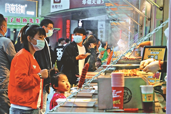 這邊,“向陽情懷”燈光夜市上,誘人的美食香味向過往的人們發(fā)出邀請,啤酒廣場舞臺上樂隊正在為游戲環(huán)節(jié)做預(yù)熱,一場視覺盛宴讓市民又多了一個好去處。那邊,“后備箱集市”讓市井味搭上“文藝風(fēng)”,城市夜景與燒烤元素碰撞,人潮熙攘,很是熱鬧。
