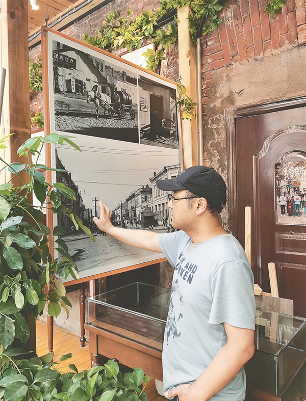 宋興文說(shuō),該樓一部分一直閑置,他投資租下該樓一部分進(jìn)行修復(fù),利用十余年來(lái)收藏的端街老建筑圖紙、文件、俄僑老家居用品、老照片等,辦起了這家私人公益博物館,2021年8月開始免費(fèi)向游人開放,介紹端街歷史文化,實(shí)現(xiàn)“哈爾濱老建筑活化”,目前每天能接待游客百余人。