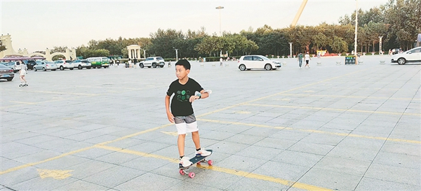7月21日18時許,太陽島地鐵站出口附近的小廣場,一群人抱著陸沖板陸續(xù)趕到,其中“80后”“90后”居多,還有帶孩子來的“寶媽”。不少人來的時候穿著上班的職業(yè)裝,換上圓領T恤,戴上鴨舌帽,配齊護具,簡單熱身后,迫不及待地開滑。
