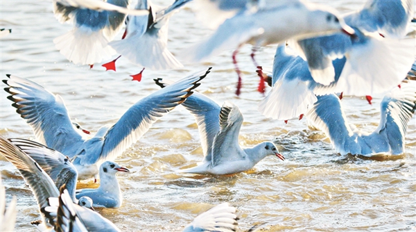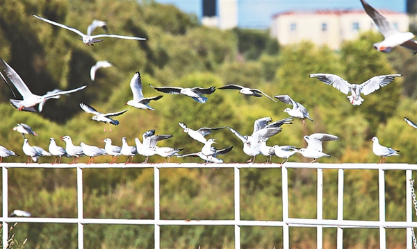 近年來,隨著環(huán)境保護力度的加大,松花江生態(tài)持續(xù)向好,水豐魚多,給紅嘴鷗等候鳥提供了豐富的食物。每年,都有超過萬只的紅嘴鷗春秋兩季在松花江這處“驛站”歇腳。 黑龍江日報記者 張澍攝