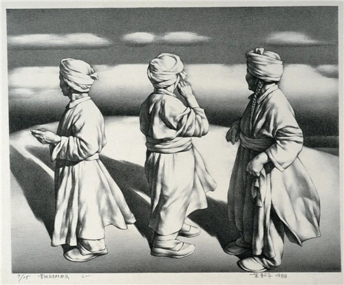 躺著的男人與遠(yuǎn)去的白馬 62×50.5cm 石版畫 1989年