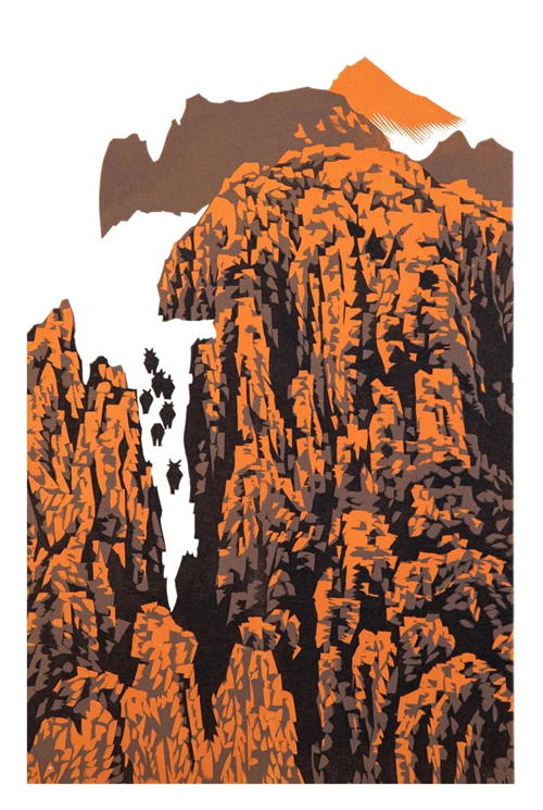 家山競(jìng)秀之四 木版 47×30cm 2020年
