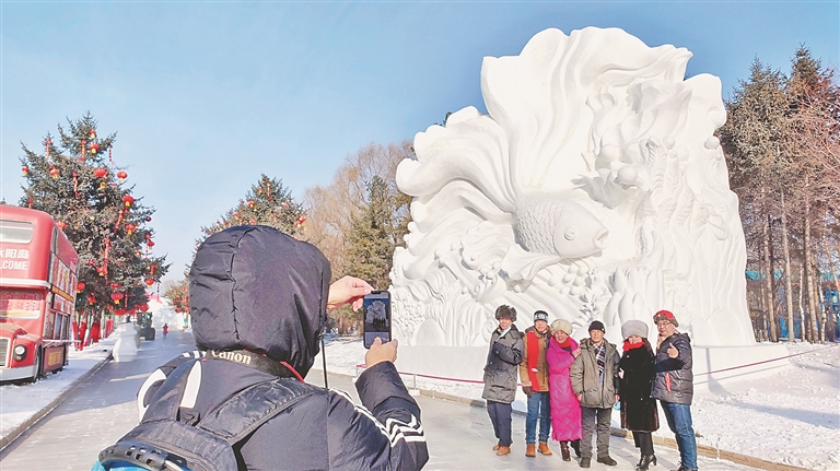 本報訊(記者 蔣國紅)“這個魚雕得太好看了,快給我拍張照!”在第35屆中國·哈爾濱太陽島國際雪雕藝術博覽會現(xiàn)場,游人或乘坐電瓶車,或徒步欣賞著美麗的雪塑盛宴。