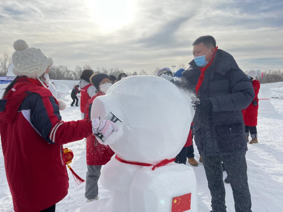 嘉賓們還與留守兒童們暢游雪博會(huì),開(kāi)啟了冰雪之旅。他們一同欣賞獨(dú)具匠心的壯麗雪雕,用心感受這座城市的冰雪文化,手拉手暢玩在零下十幾度的冰天雪地,為留守兒童們留下屬于這個(gè)冬天最珍貴的美好回憶。在雕刻指導(dǎo)教練的耐心講解中,共青團(tuán)省委副書(shū)記夏天和留守兒童們共同完成了蘊(yùn)含著特殊意義的“宇航員”雪雕,它將承載著希望與愛(ài)迎接2023年的春暖花開(kāi)。