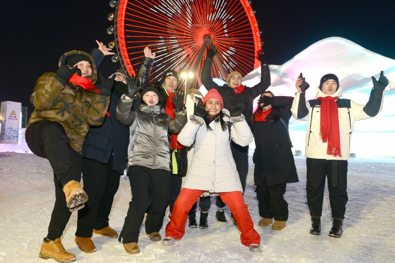 當(dāng)天上午,在雪博會,來自黑龍江大學(xué)的各國留學(xué)生代表與中國青少年結(jié)對互動,互贈新春禮物,表達(dá)對即將迎來的兔年美好祝福。中外青少年小手拉大手,共游太陽島雪博會,鯉魚躍龍門、圓夢啟程、雪冠博覽等雪雕雪景讓大家流連忘返。世界各國青少年一起雕刻“宇航員”雪雕,送上春聯(lián)祝福語,體驗了中國傳統(tǒng)文化和濃濃的年味,表達(dá)了對世界文化共融的美好祝愿。