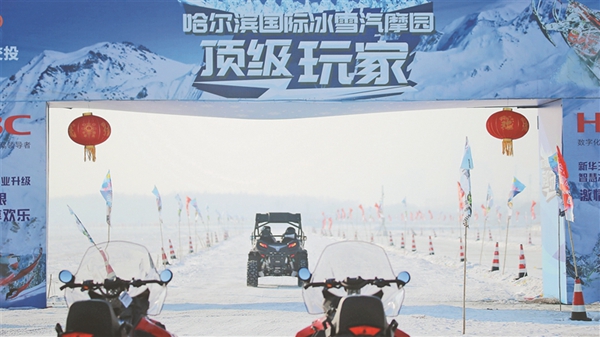 近日,在哈爾濱大劇院南廣場(chǎng)前的松花江冰面上,一輛輛卡丁車、雪地摩托車、全地形越野車風(fēng)馳電掣,不時(shí)激起陣陣冰花。作為全國(guó)最大的冬季戶外汽摩泛娛樂運(yùn)動(dòng)基地,哈爾濱國(guó)際冰雪汽摩園在今冬開園后,深受追捧。每天,來這里游玩的人絡(luò)繹不絕。