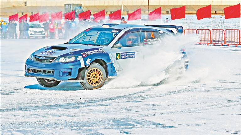 本次比賽地點(diǎn)設(shè)在中俄界江黑龍江江面上。比賽設(shè)置大排量和小排量?jī)蓚€(gè)組別,進(jìn)行資格賽和決賽的比拼,雙方各派出20輛汽車參賽。比賽采用電子計(jì)時(shí)和機(jī)械計(jì)時(shí)兩種方式,參賽選手分別在周長(zhǎng)1.5公里的A型場(chǎng)地和3.8公里的B型場(chǎng)地上駕車行駛,兩次用時(shí)之和為最終比賽成績(jī),用時(shí)最短者勝出?,F(xiàn)場(chǎng)500多名中俄觀眾共賞這場(chǎng)冰雪汽車挑戰(zhàn)盛宴。