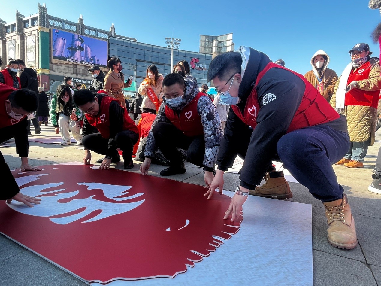 在會場的中間,一幅長3.6米,寬3.6米的學(xué)習(xí)雷鋒主題拼畫,在黨員干部、青年志愿者和青少年的齊心協(xié)力下呈現(xiàn)出來,展現(xiàn)了志愿者以實(shí)際行動向雷鋒同志學(xué)習(xí),引導(dǎo)青少年積極向上,努力奮斗的精神風(fēng)貌。